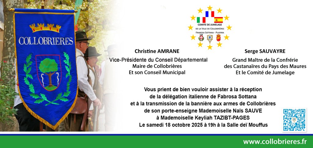 RÉCEPTION DE LA DÉLÉGATION ITALIENNE DE FABROSA SOTTANA ET À LA TRANSMISSION DE LA BANNIÈRE AUX ARMES DE COLLOBRIÈRES