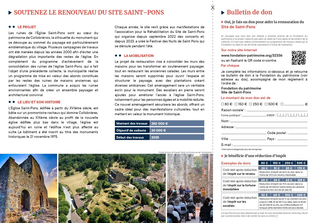 Je donne ! Pour la restauration du site de Saint-Pons
