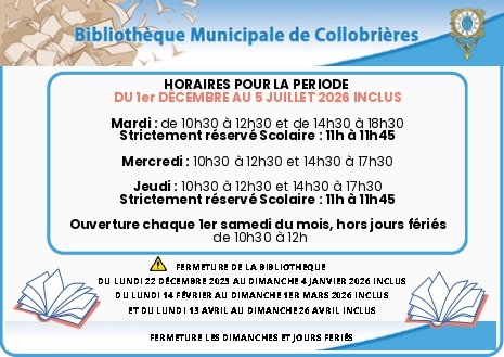 NOUVEAUX HORAIRES DE LA BIBLIOTHÈQUE