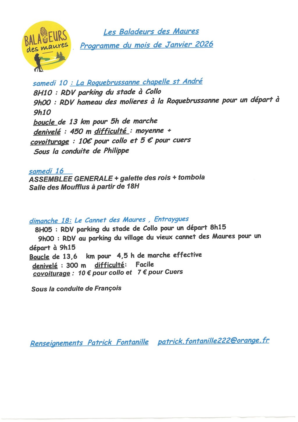 LES BALADEURS DES MAURES : PROGRAMME DE JANVIER 2026