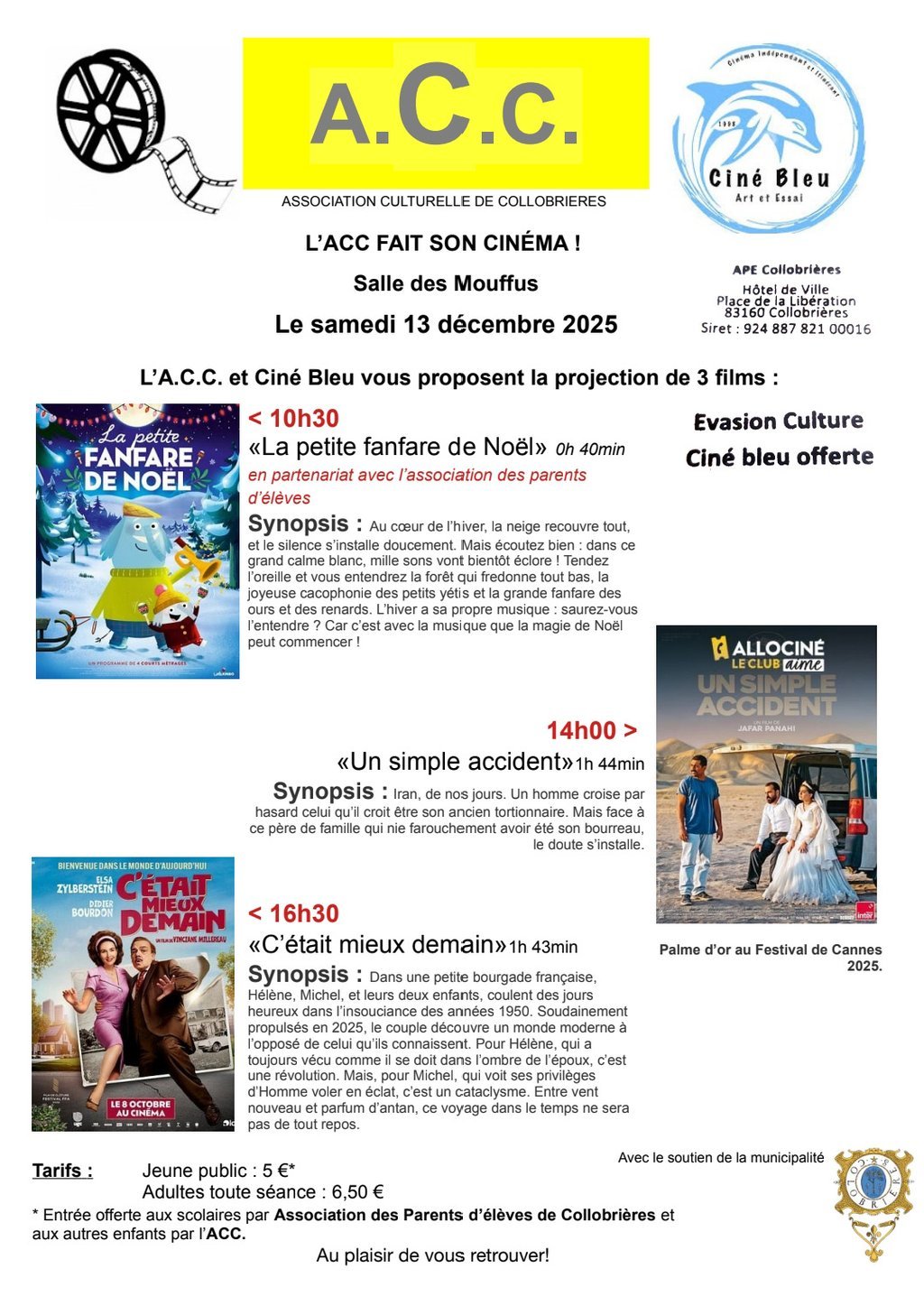 ACC - Salle deï Moufus - à partir de 10h00 (plusieurs séances)